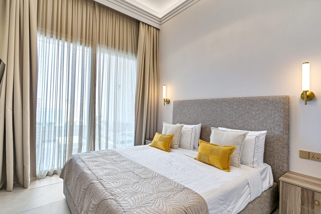 Das Seaview Luxe Master ist ein Refugium der Eleganz und Ruhe. Mit einem plüschigen Kingsize-Bett und einem privaten Balkon mit weitem Blick auf das Mittelmeer ist es perfekt, um den Morgenkaffee oder den Wein zum Sonnenuntergang zu genießen. Das en-suite Badezimmer ist mit Marmor, einer geräumigen Badewanne und einer Dusche mit atemberaubendem Meerblick ausgestattet. Jedes Detail ist auf heiteren Luxus ausgelegt und bietet eine harmonische Mischung aus natürlicher Schönheit und raffiniertem Komfort.