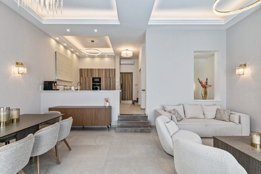 Olymp Luxury House offers a luxurious, family retreat with modern amenities and unique coastal views featuring private pool, Sauna, Rooftop Lounge, sophisticated interiors, comfortable furniture. It’s ideal for families and friends seeking privacy, comfort, and an unforgettable luxury Lifestyle.